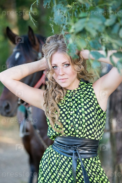Молодая красивая девушка с лошадью на природе