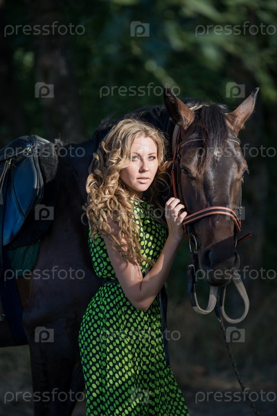 Молодая красивая девушка с лошадью на природе