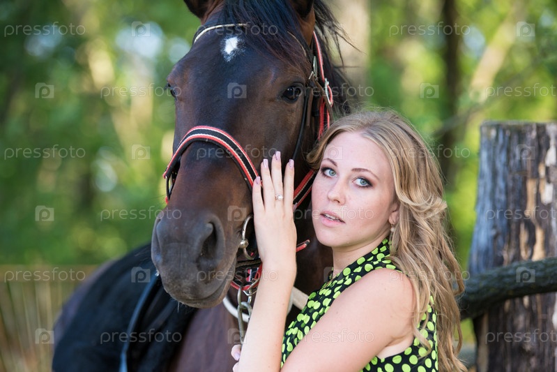 Молодая красивая девушка с лошадью на природе