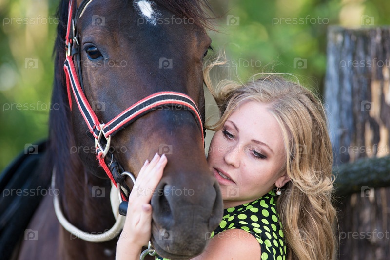 Молодая красивая девушка с лошадью на природе