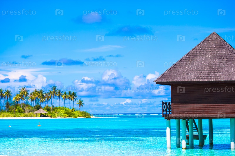 Бунгало на воде и деревянный причал
