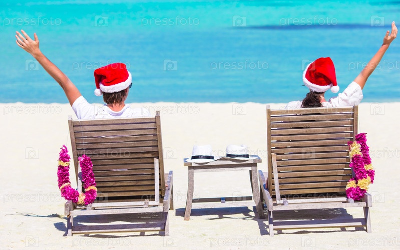 Молодая пара на пляже во время рождественские каникулы