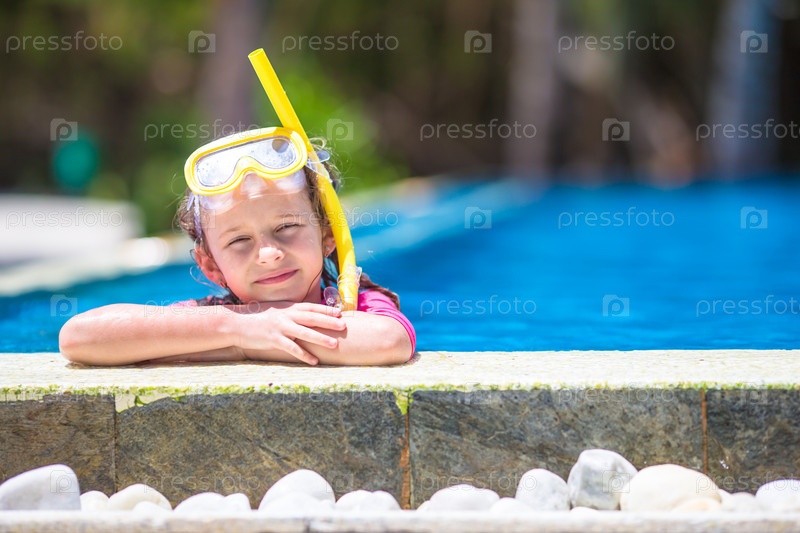 Очаровательная маленькая девочка в плавательной маске