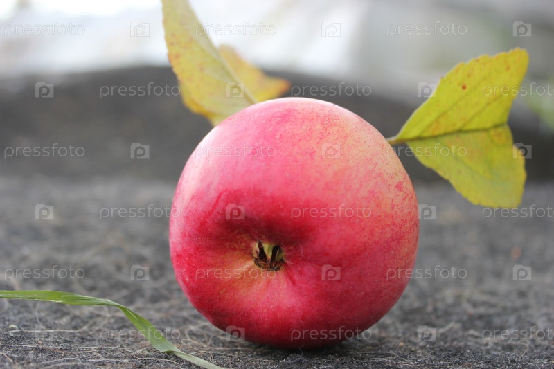 Красное спелое яблоко крупным планом