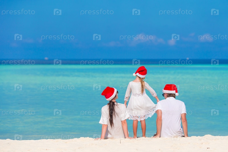 Молодая семья во время рождественских каникул на пляже