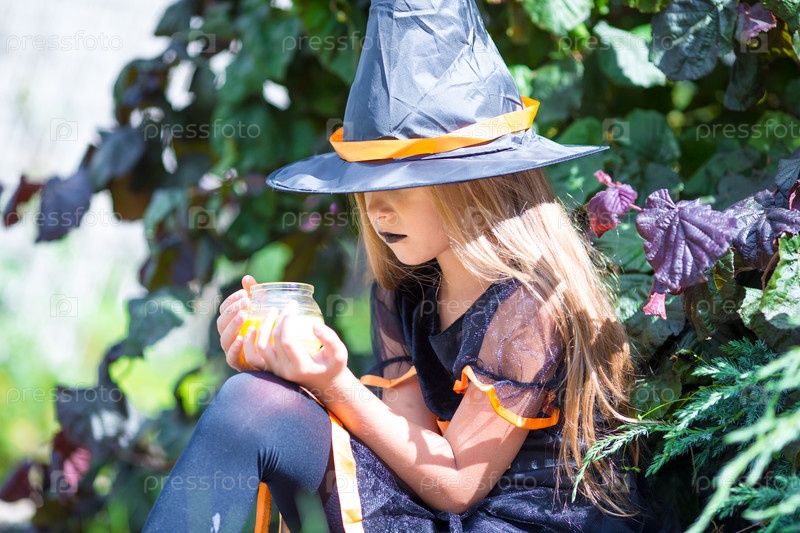 Портрет счастливой маленькой девочки на Хэллоуин