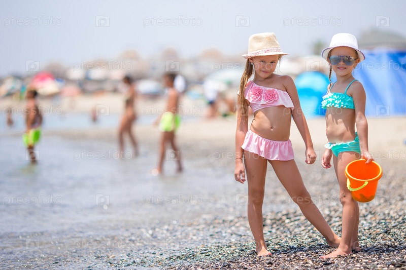 Очаровательные девочки веселятся во время пляжного отдыха