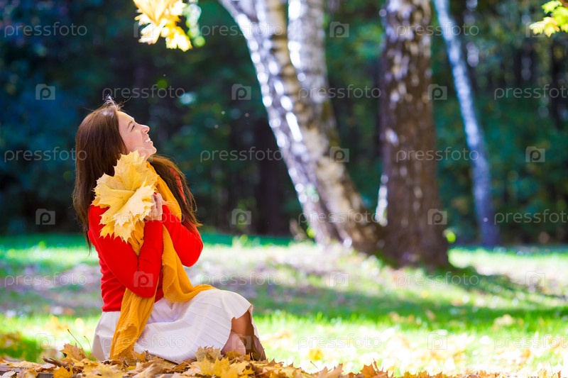 Счастливая молодая женщина в Осеннем парке