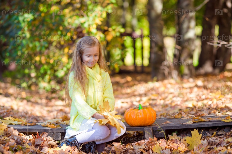 Очаровательная маленькая девочка с тыквой
