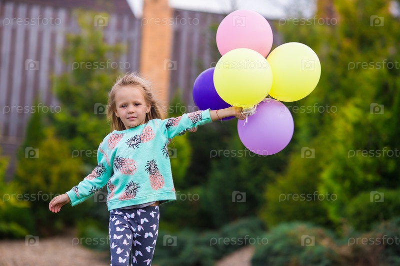 Счастливый маленькая девочка, играя с шарами