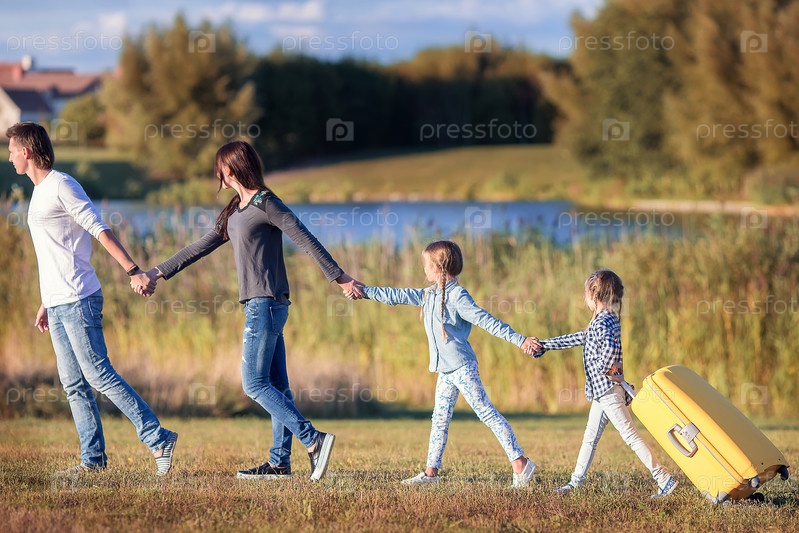 Счастливая семья с чемоданом