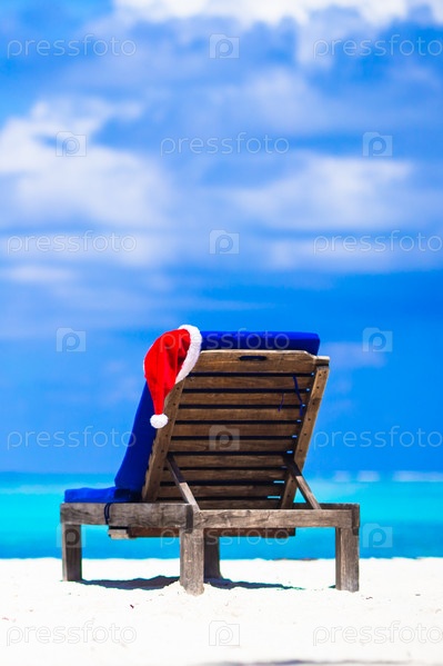 Красный колпак Санта-Клауса на шезлонге