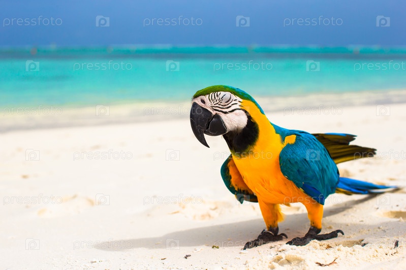 Симпатичный попугай на белом песке