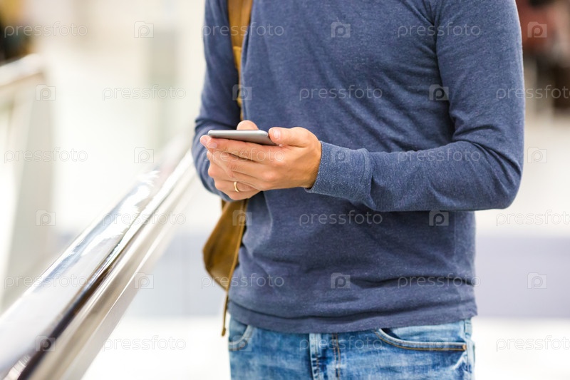 Человек с рюкзаком и телефоном