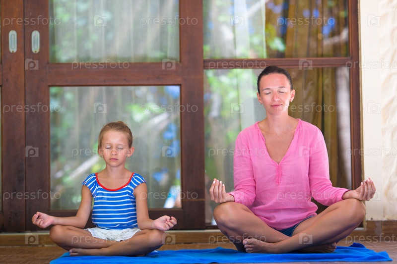 Мать и дочь занимаются йогой
