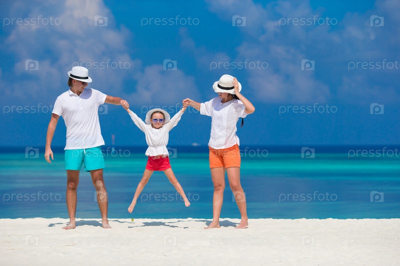 Молодая семья на пляже