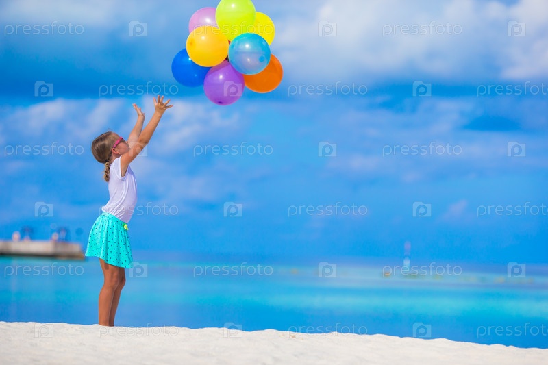 Очаровательная маленькая девочка с воздушными шариками на пляже