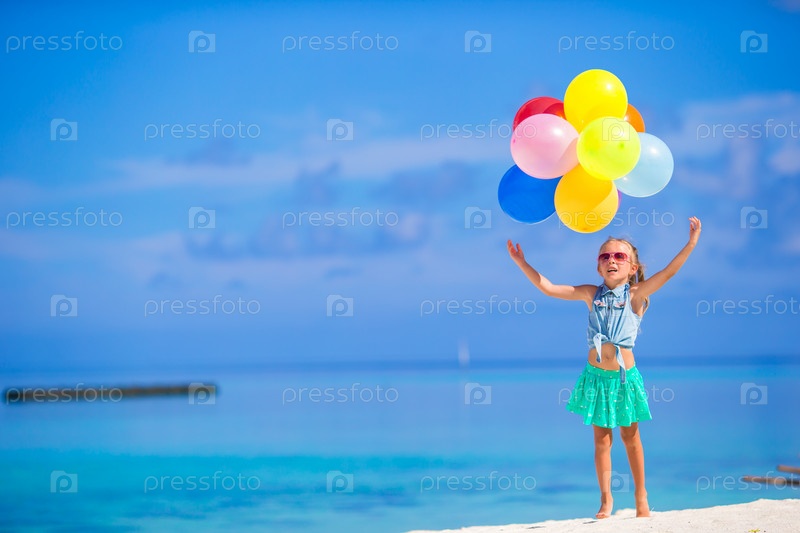 Очаровательная маленькая девочка на пляже с воздушными шариками