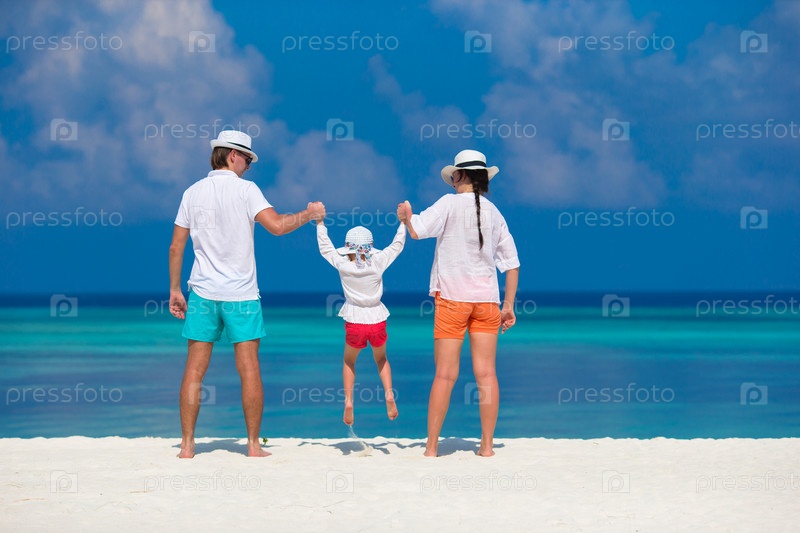 Молодая семья на пляже