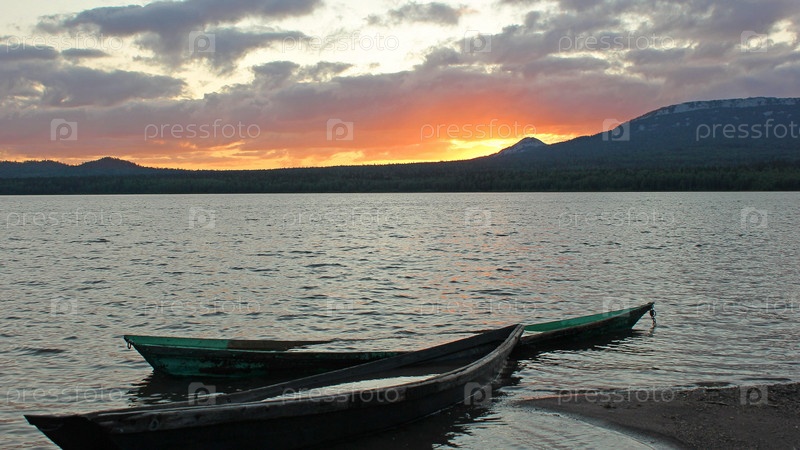 Закат на озере Зюраткуль, Урал, Россия