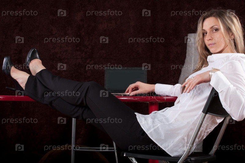 Бизнес-леди положила ноги на стол