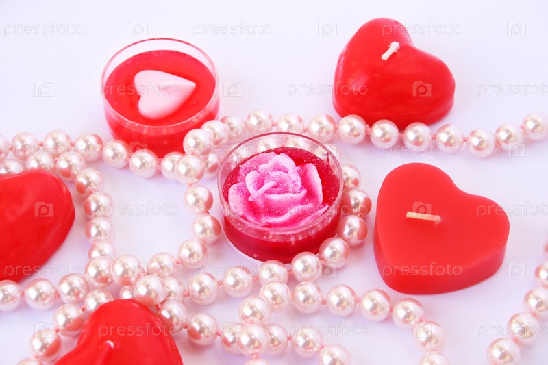 Свечи и ожерелье на сером фоне