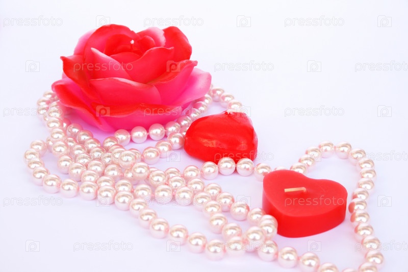 Свечи и ожерелье на сером фоне