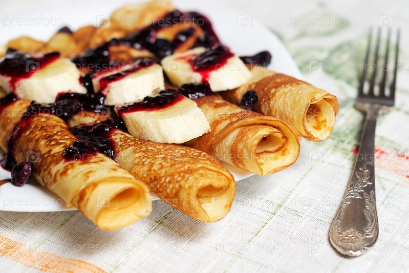 Блины с бананом и вареньем
