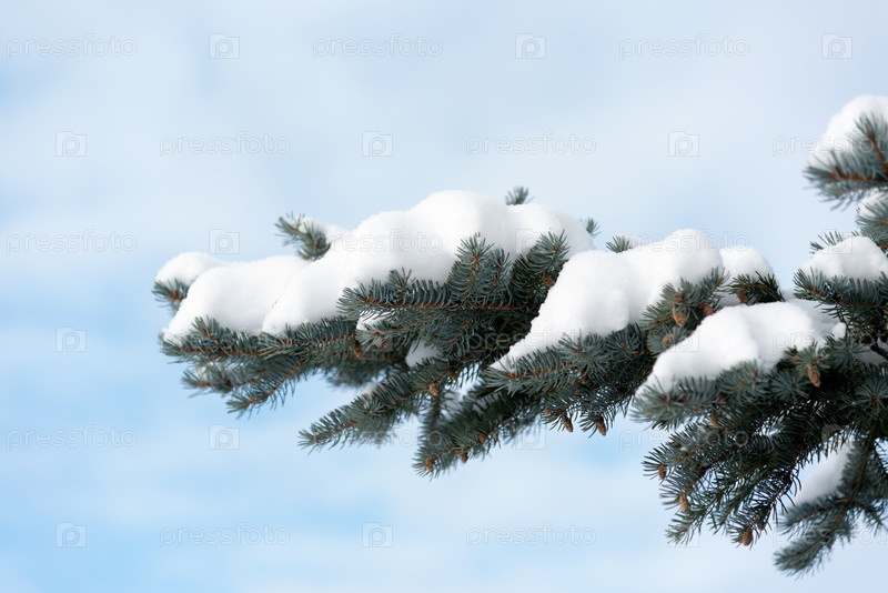 Ветви ель в снегу