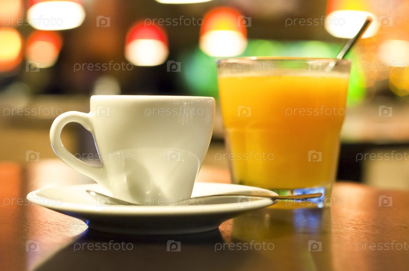 Чашка кофе и стакан апельсинового сока