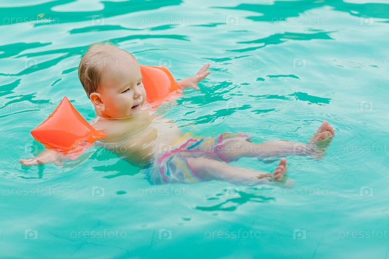 Маленький мальчик учится плавать