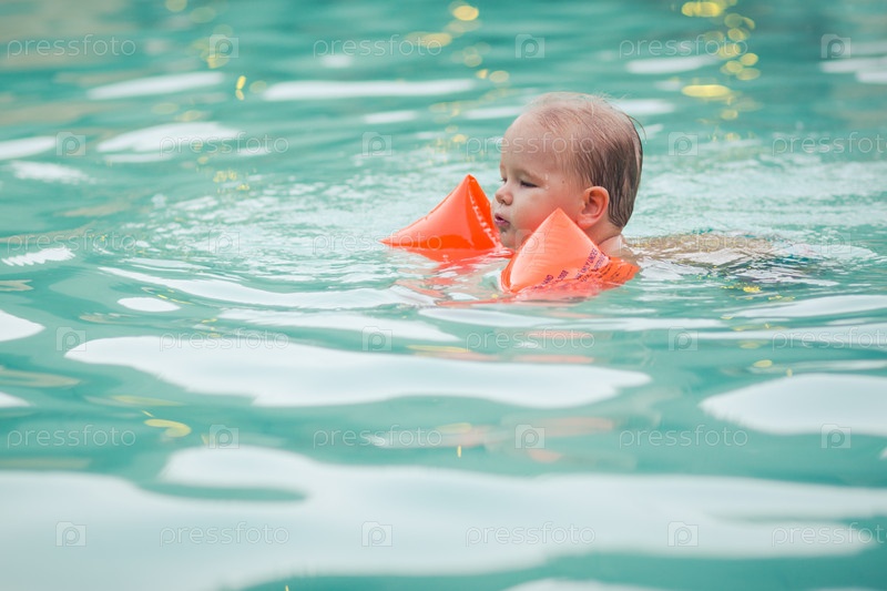 Маленький мальчик учится плавать