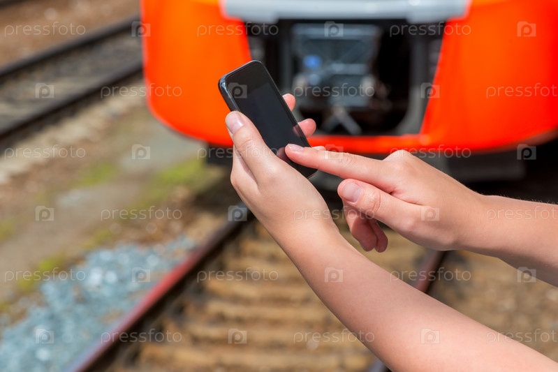 Сенсорный мобильный телефон в женских руках
