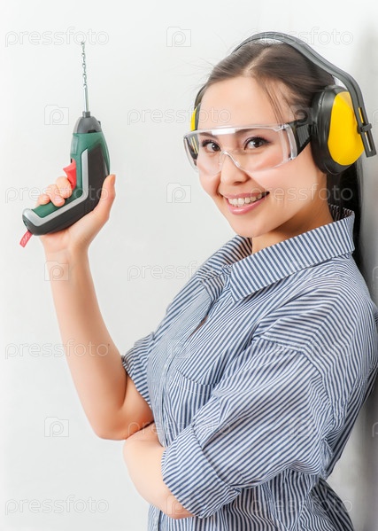 Молодая женщина с дрелью