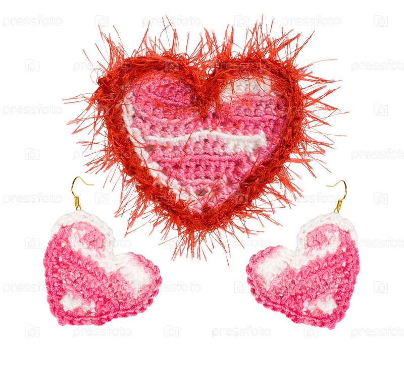Набор вязаных сердец ручной работы. подарок на день святого валентина. коллаж