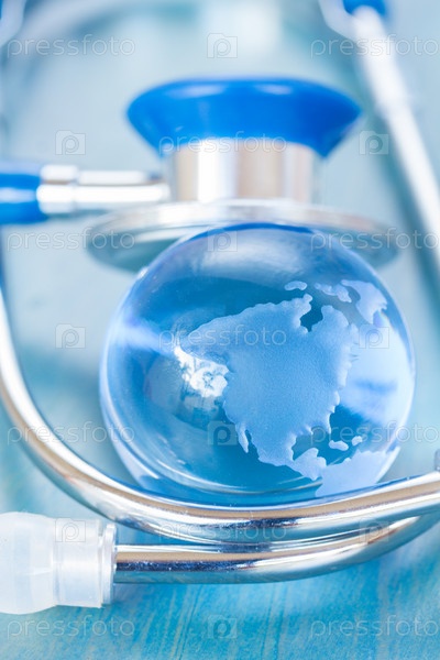 Стетоскоп и стеклянный глобус