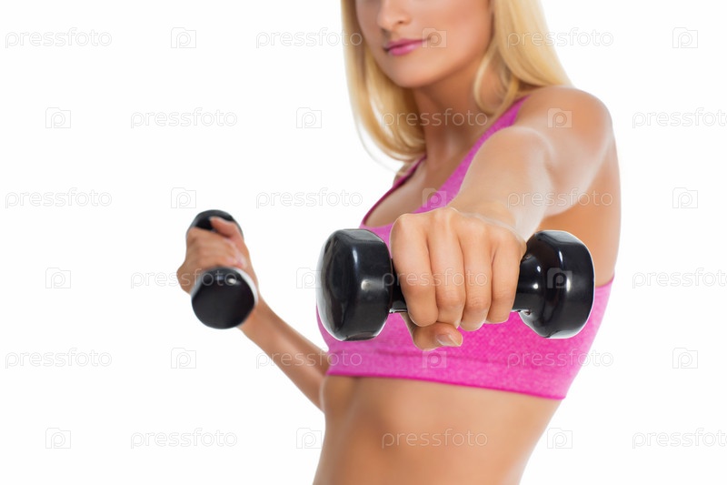 Девушка с гантелей