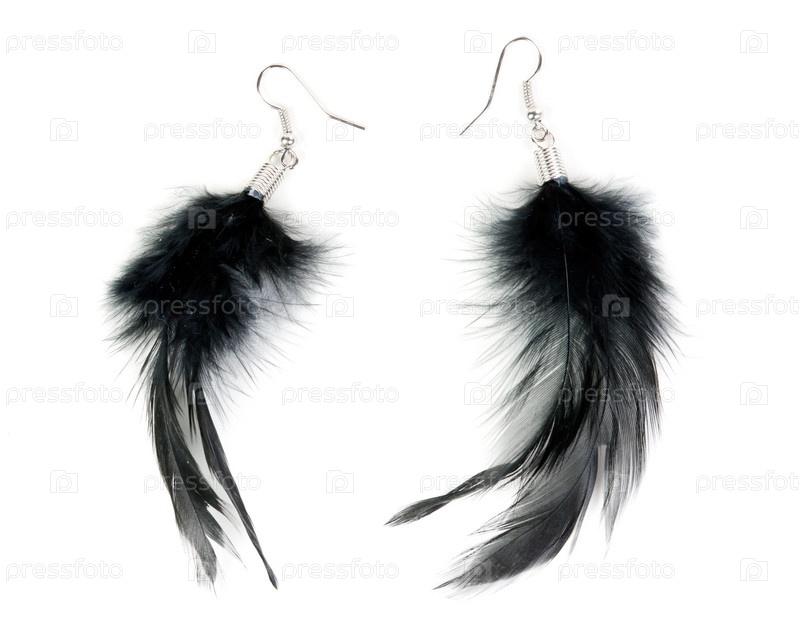 Сережки из перьев на белом фоне