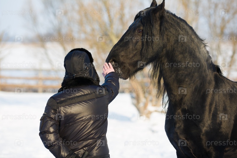 Мужчина и черный жеребец