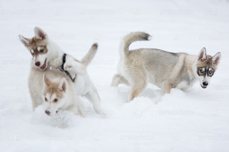 Игривые щенки хаски