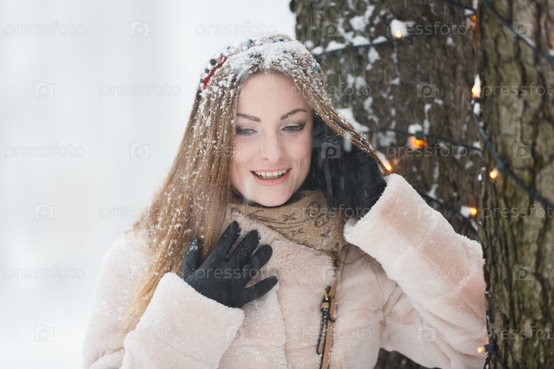 Красивая девушка в зимнем парке