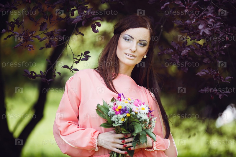 Очаровательная женщина с букетом цветов