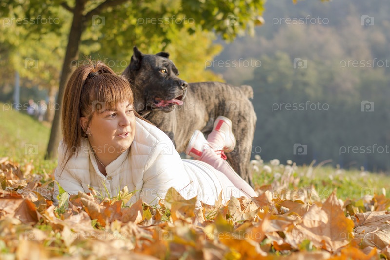 Женщина и ее собака Кане Корсо