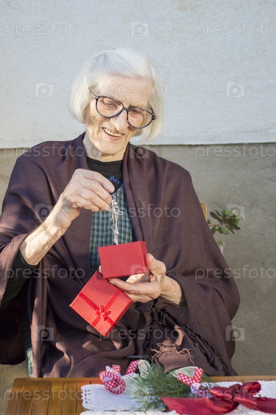 Счастливая бабушка с рождественским подарком