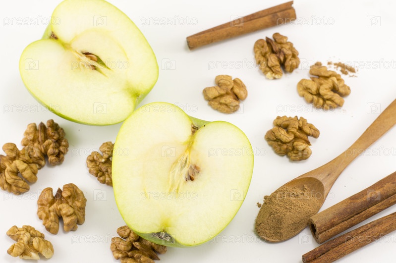 Грецкие орехи, корица и яблоко