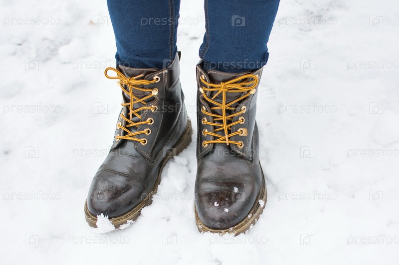Кожаные сапоги в снегу