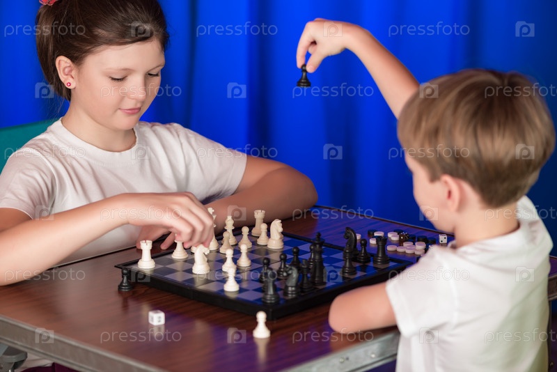 Дети играют в настольную игру под названием шахматы