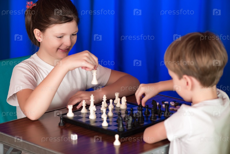 Дети играют в настольную игру под названием шахматы
