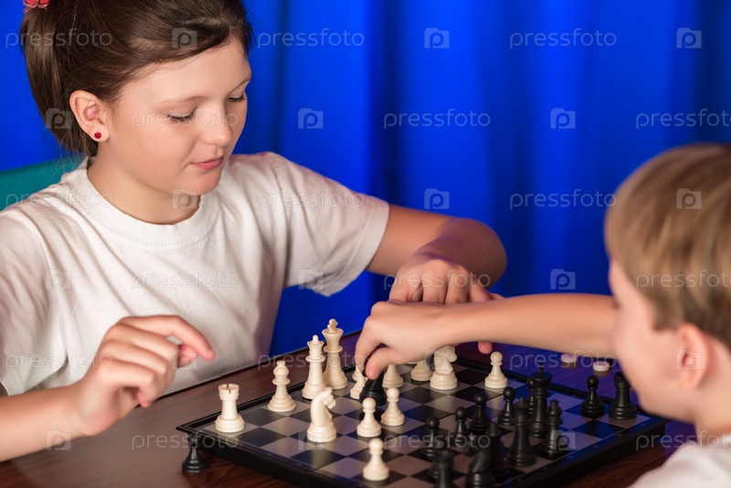 Дети играют в настольную игру под названием шахматы