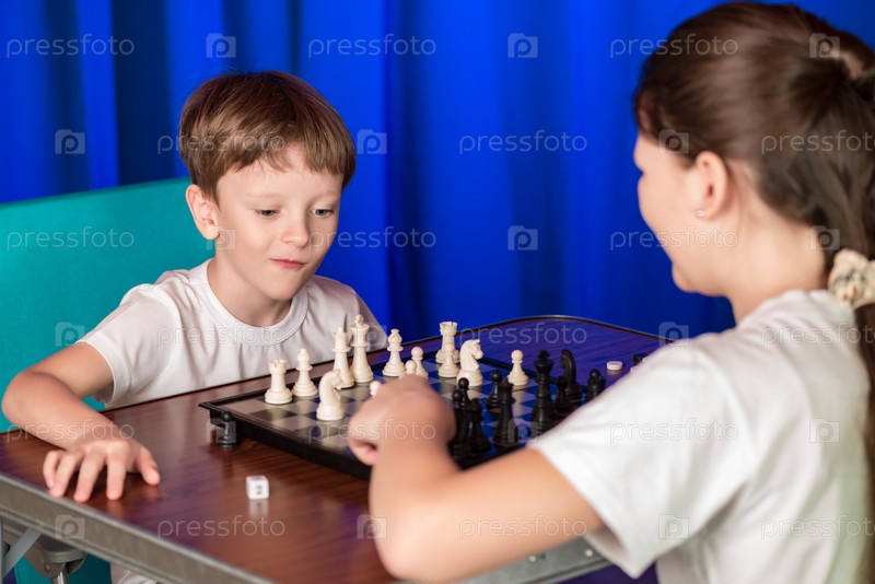 Дети играют в настольную игру под названием шахматы